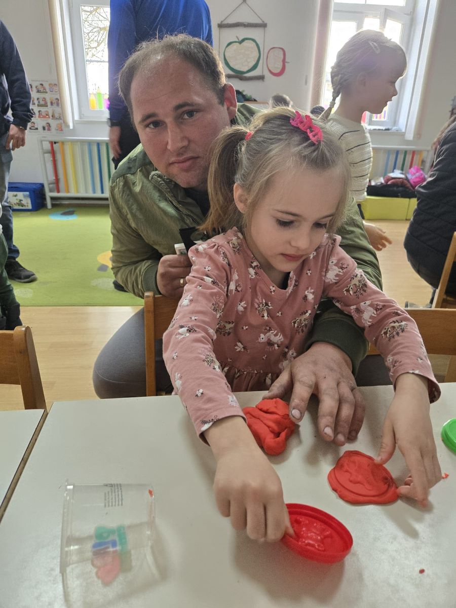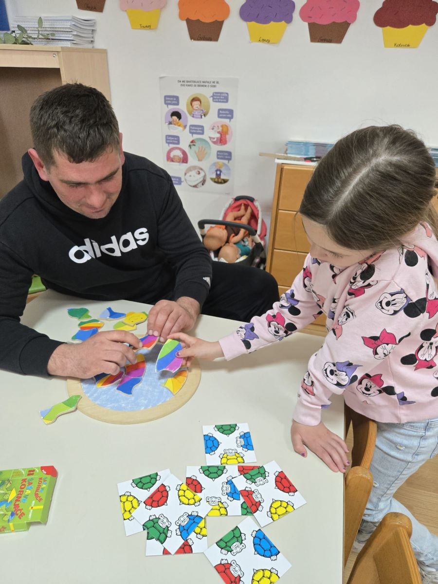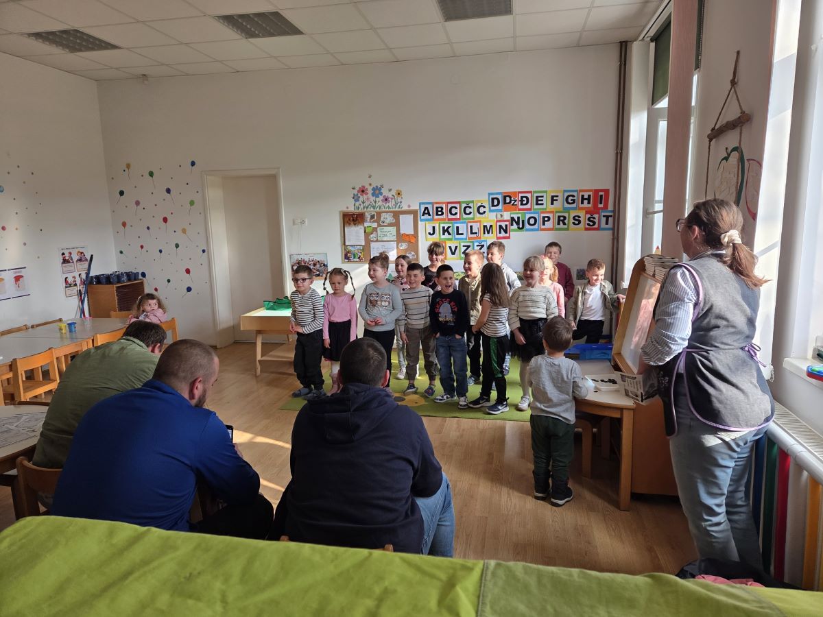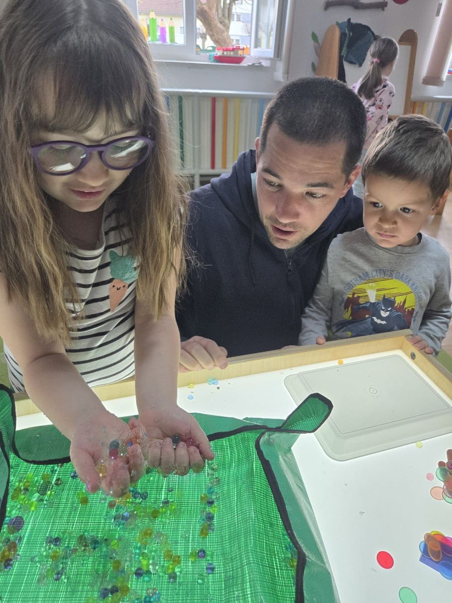Dana 19. ožujka 2026. godine u popodnevnim satima u Dječjem vrtiću Suhopolje skupina Točkice obilježila je Dan očeva prigodnom igraonicom i zajedničkim druženjem djece i njihovih očeva. Dan očeva u našem vrtiću tradicionalno obilježavamo s ciljem jačanja obiteljskih veza i poticanja aktivnog uključivanja očeva u odgojno-obrazovni proces. Očevi su se rado odazvali našem pozivu te smo susret započeli ugodnim druženjem i zakuskom u sobi dnevnog boravka, stvarajući poticajno i opušteno ozračje. Djeca su svojim očevima pripremila kratki prigodni program – recitirala su pjesmice i stihove te im uručila vlastoručno izrađene čestitke i darove kao znak ljubavi i zahvalnosti. U nastavku druženja očevi i djeca sudjelovali su u zajedničkim likovnim aktivnostima i društvenim igrama koje su poticale suradnju, međusobno uvažavanje i timski duh. Završni dio susreta proveli smo na dvorištu vrtića, gdje su očevi i djeca kroz sportske aktivnosti, igru nogometa i slobodnu igru na spravama dodatno učvrstili međusobne odnose. Kroz kretanje i zajedničku igru poticali smo razvoj motoričkih sposobnosti, socijalnih vještina i pozitivne slike o sebi. Ovakva druženja imaju posebnu vrijednost jer doprinose osjećaju pripadnosti, sigurnosti i zajedništva te stvaraju lijepe uspomene koje djeca nose sa sobom.