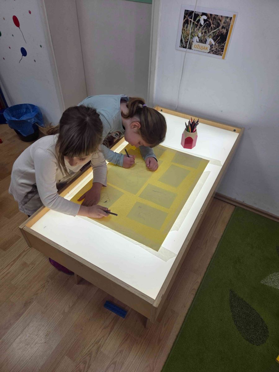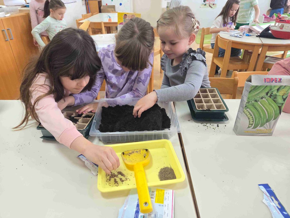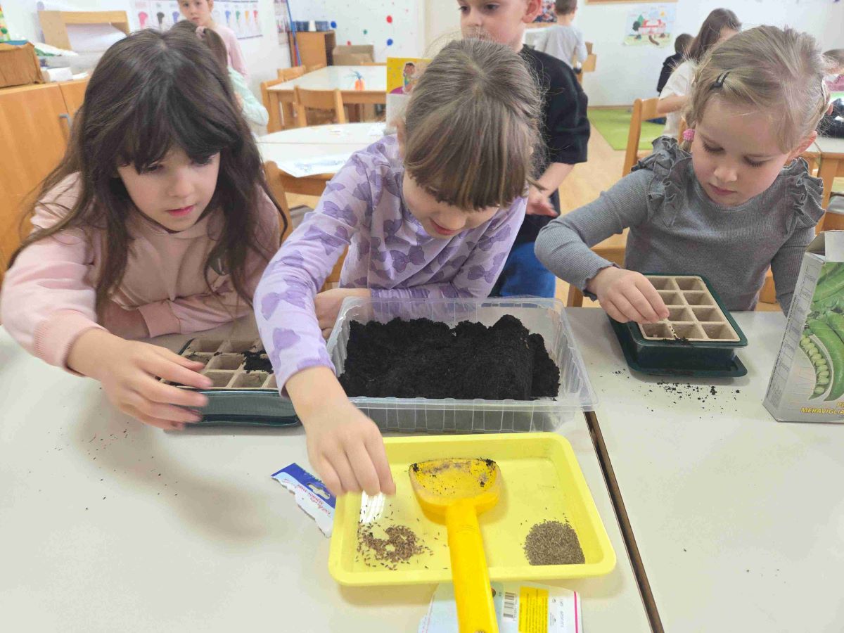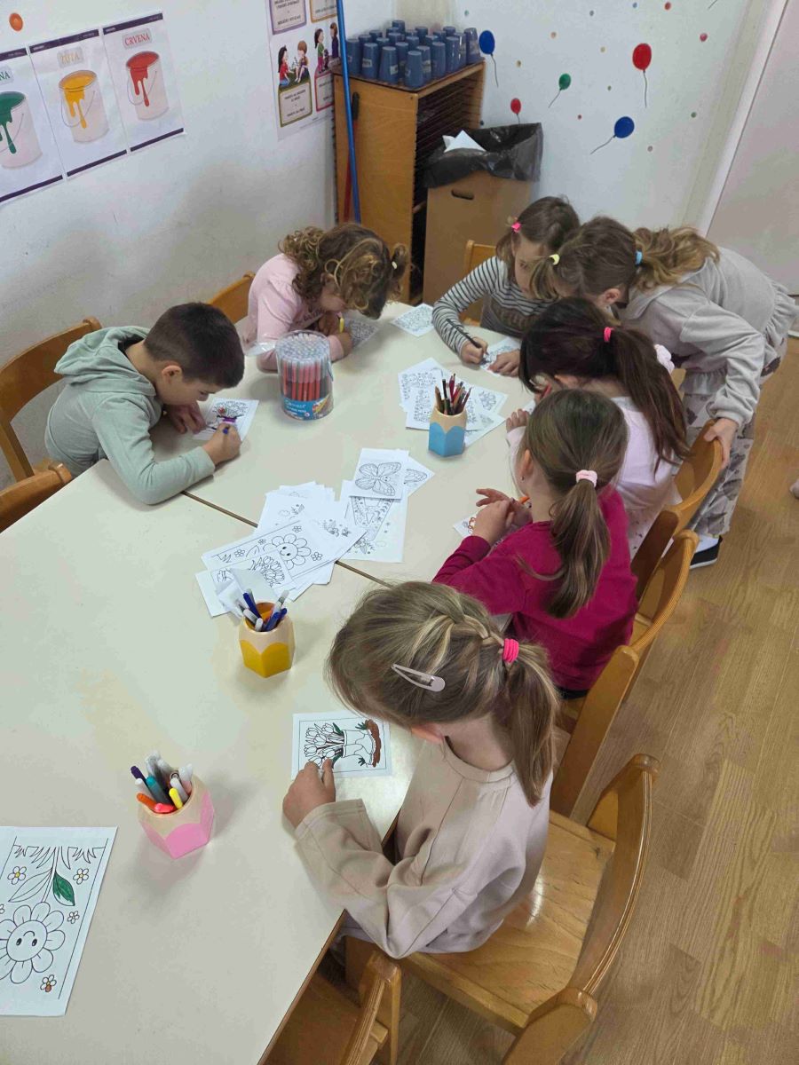 U skupini Točkice proteklo razdoblje obilježile su aktivnosti povezane s temama proljeća, zdravlja i upoznavanja ljudskog tijela. Kroz raznovrsne i poticajne sadržaje djeca su učila promatrajući, istražujući i aktivno sudjelujući u svakodnevnim situacijama. Tijekom boravka na svježem zraku djeca su u šetnjama promatrala promjene u prirodi, uočavala znakove proljeća te razvijala interes za svijet koji ih okružuje. Posebno ih je razveselilo sijanje povrća i cvijeća, čime su stekla početna iskustva o rastu i razvoju biljaka te važnosti brige za prirodu. Likovne aktivnosti bile su raznolike i kreativne – djeca su precrtavala motive na svjetlećem stolu, izrezivala proljetne oblike, otiskivala i crtala motive proljeća te izrađivala radove lijepljenjem različitih rastresitih materijala. Na taj način razvijala su finu motoriku, preciznost i kreativno izražavanje.