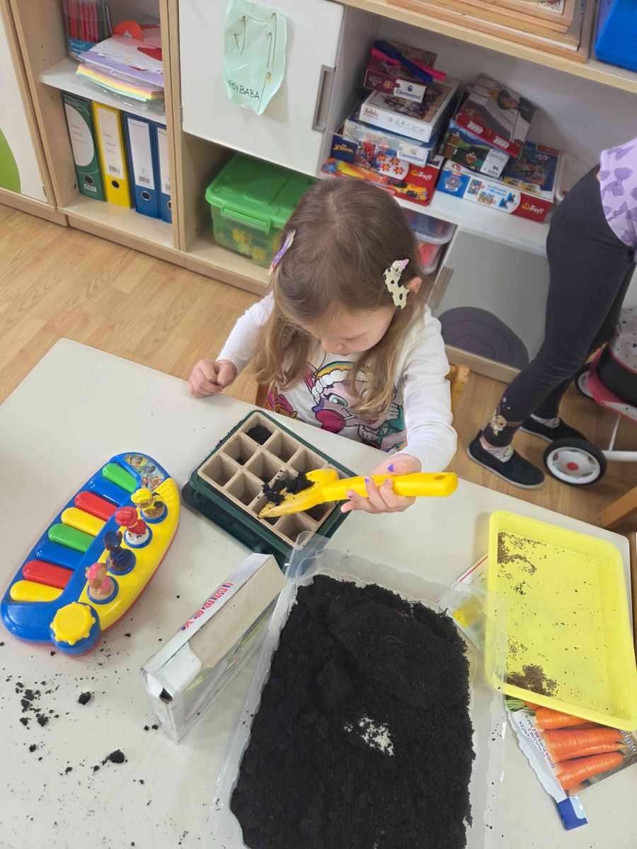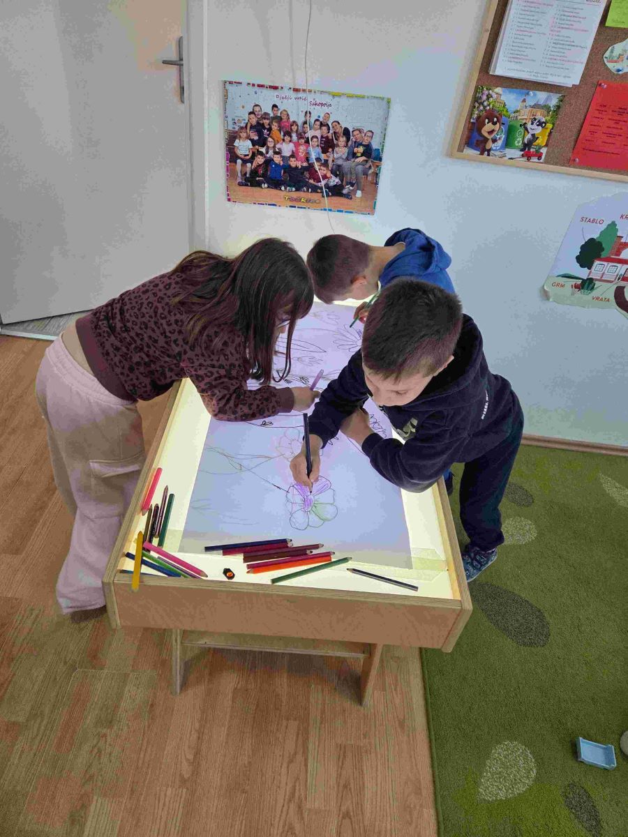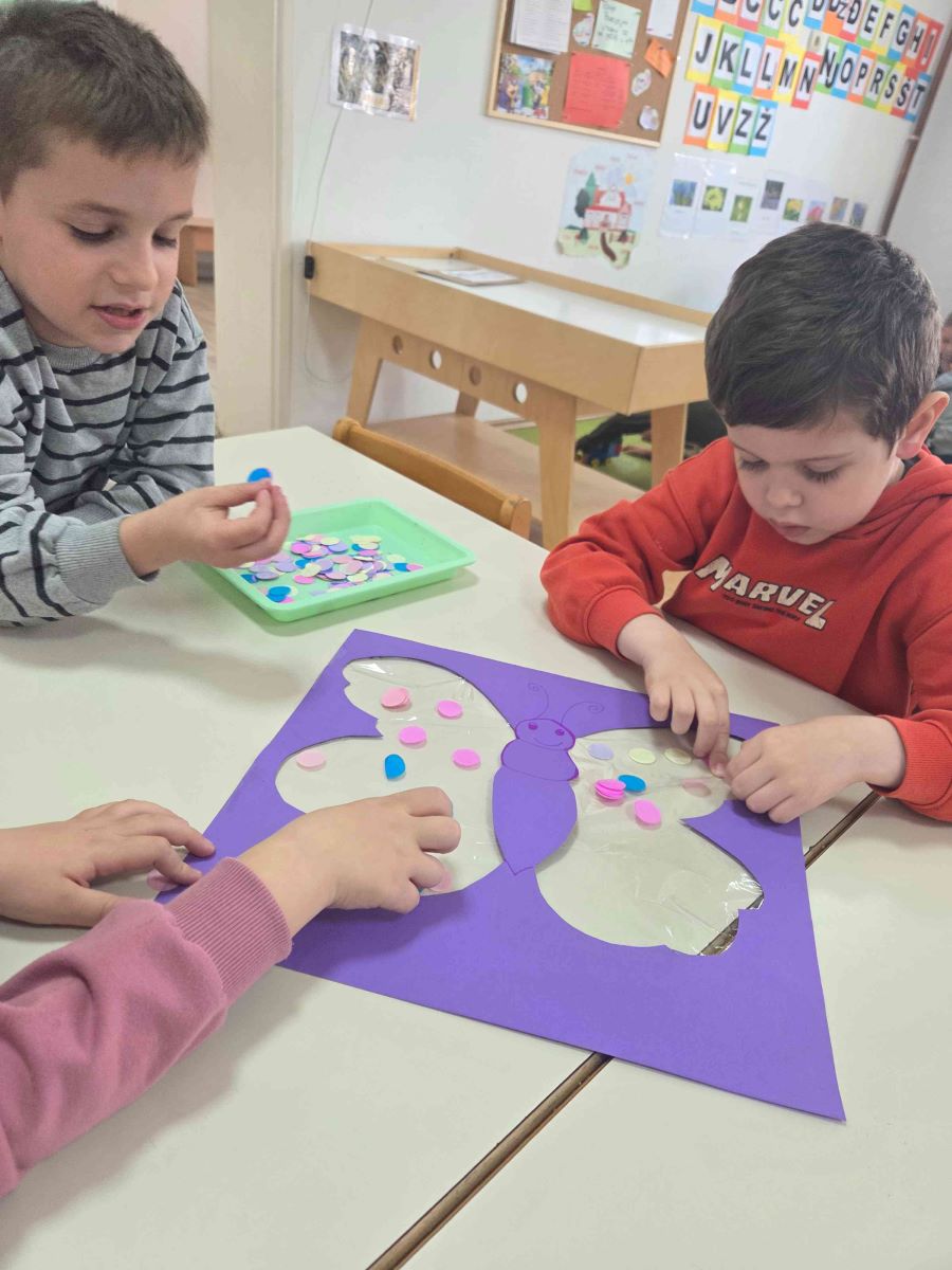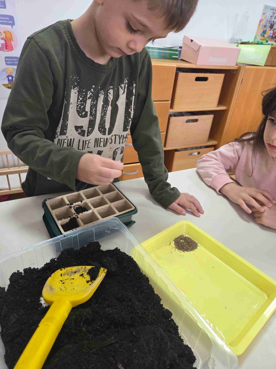 U skupini Točkice proteklo razdoblje obilježile su aktivnosti povezane s temama proljeća, zdravlja i upoznavanja ljudskog tijela. Kroz raznovrsne i poticajne sadržaje djeca su učila promatrajući, istražujući i aktivno sudjelujući u svakodnevnim situacijama. Tijekom boravka na svježem zraku djeca su u šetnjama promatrala promjene u prirodi, uočavala znakove proljeća te razvijala interes za svijet koji ih okružuje. Posebno ih je razveselilo sijanje povrća i cvijeća, čime su stekla početna iskustva o rastu i razvoju biljaka te važnosti brige za prirodu. Likovne aktivnosti bile su raznolike i kreativne – djeca su precrtavala motive na svjetlećem stolu, izrezivala proljetne oblike, otiskivala i crtala motive proljeća te izrađivala radove lijepljenjem različitih rastresitih materijala. Na taj način razvijala su finu motoriku, preciznost i kreativno izražavanje.
