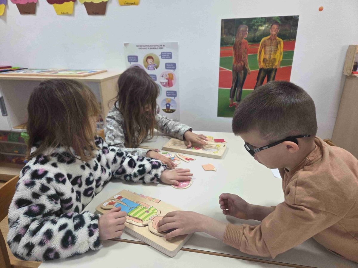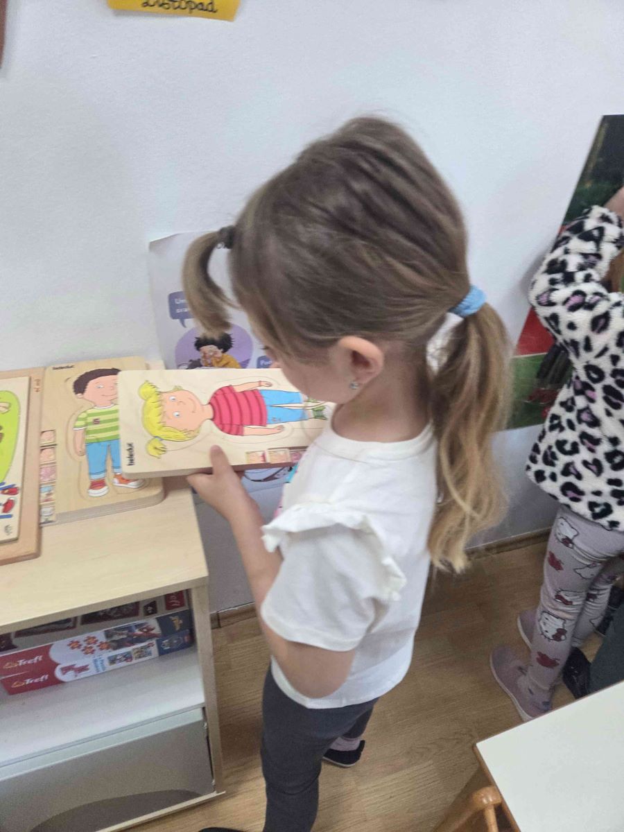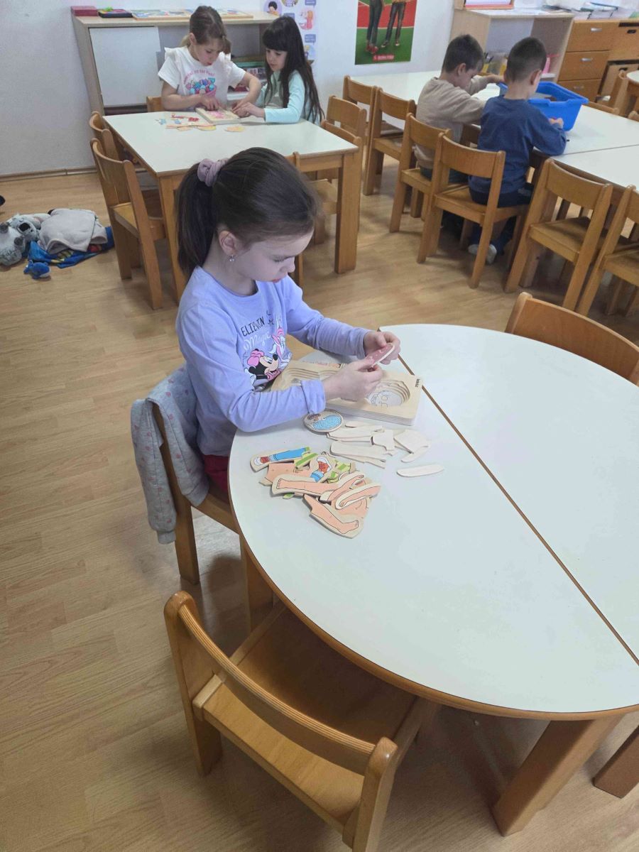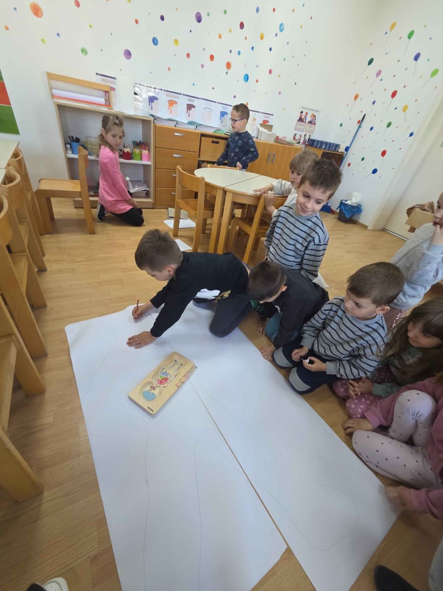 Kroz igre i didaktičke materijale djeca su upoznavala ljudsko tijelo i važnost očuvanja zdravlja. Slagala su puzzle i slagalice na temu tijela, sudjelovala u predmatematičkim aktivnostima sastavljanja ljudskog tijela pomoću geometrijskih likova te kroz razgovor učila o dijelovima tijela i njihovim funkcijama. Mjerenjem visine međusobno su uspoređivala rezultate, čime su razvijala matematičke i socijalne vještine. Posebno zanimljiva bila je pokretna igra „Obrnuti zadaci“, koja je poticala pažnju, snalažljivost i tjelesnu aktivnost. Djeca su također ocrtavala vlastito tijelo te crtala unutarnje organe, a sve je objedinjeno izradom zajedničkog plakata. Kroz sve aktivnosti djeca su razvijala spoznajne, motoričke i socio-emocionalne vještine, jačala svijest o važnosti zdravlja te s veseljem istraživala svijet oko sebe.