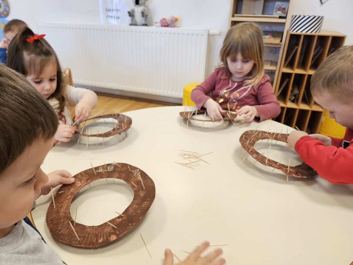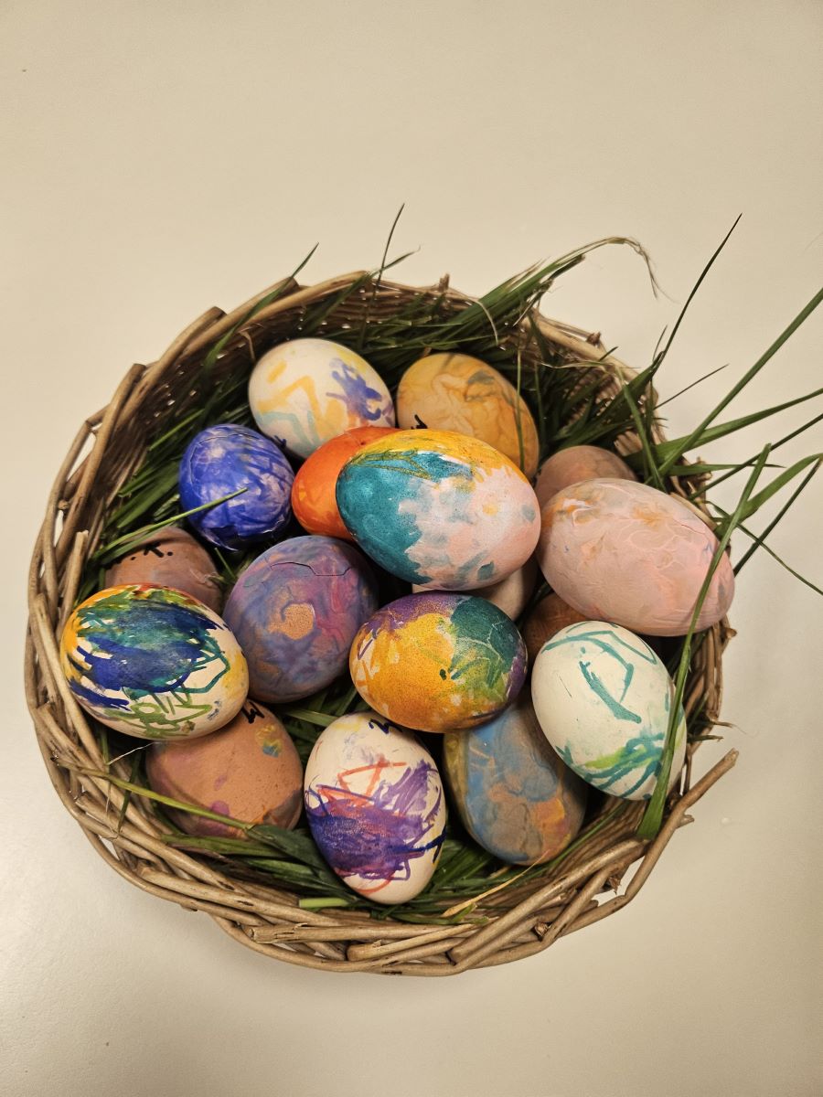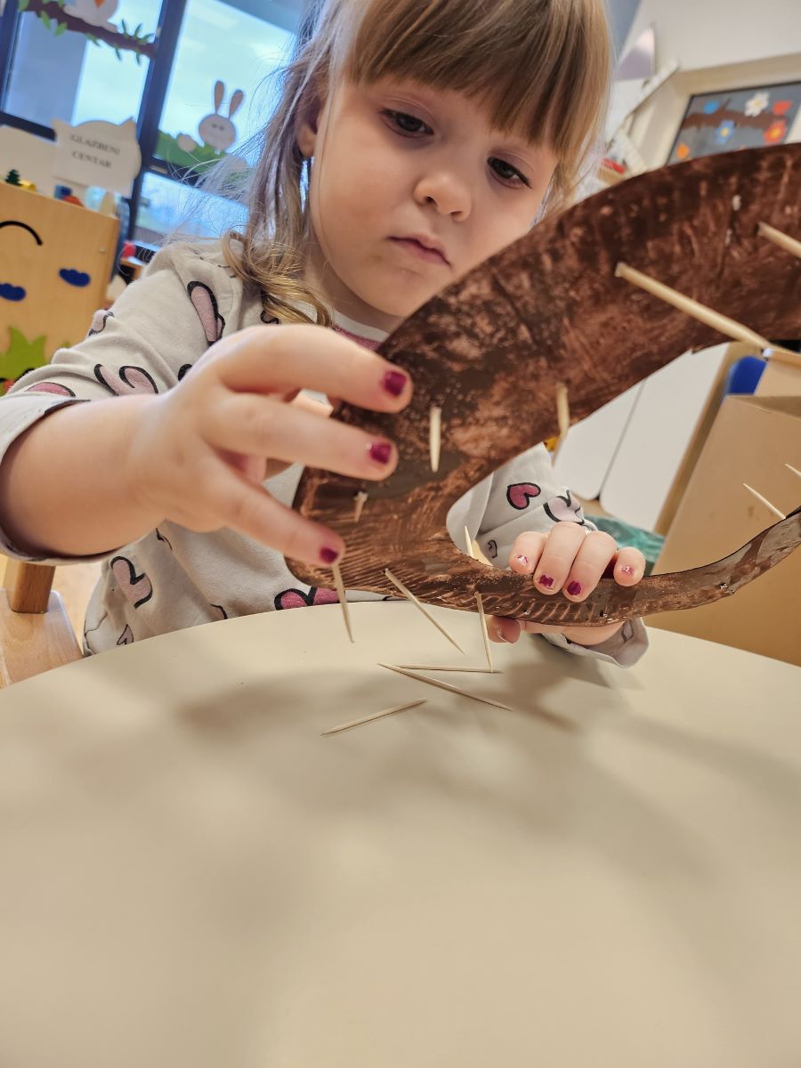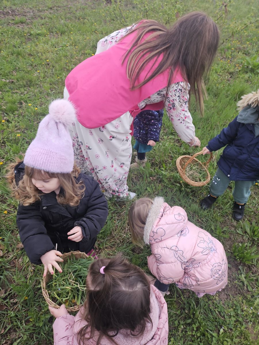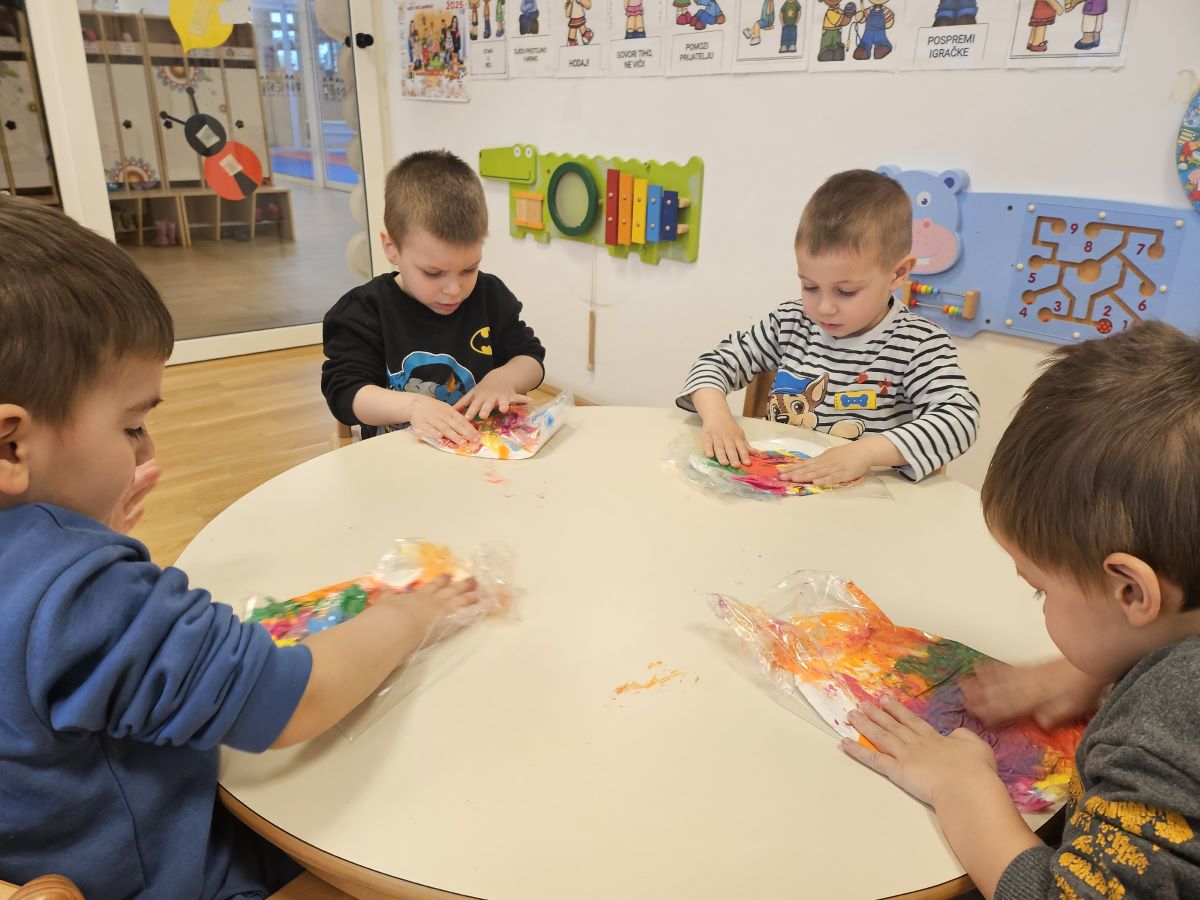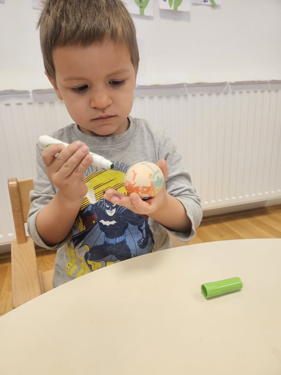 U našoj jasličkoj skupini „Zečići“ protekli su dani bili u znaku priprema za Uskrs. Kroz igru, razgovor i razne aktivnosti djeca su upoznavala uskrsne običaje i tradiciju. Vrijedne male ruke ukrašavale su i izrađivale uskrsna jaja različitim tehnikama, a s velikim su veseljem izrađivala i uskrsne čestitke za svoje najmilije. U šetnji okolicom djeca su brala travu od koje smo zajedno napravili uskrsno gnijezdo. Kroz razgovor smo djeci na njima primjeren način približili priču o Isusovoj muci i uskrsnuću, a tom prilikom izrađivali smo i krunu od trnja. Naše aktivnosti upotpunila je i izrada pilića i zečića, koji su dodatno uljepšali prostor naše skupine i donijeli pravi uskrsni ugođaj. Uz sve pripreme za Uskrs, u našoj smo skupini proslavili i rođendan, pa je tjedan bio ispunjen veseljem, pjesmom i smijehom. Kroz sve aktivnosti djeca su razvijala kreativnost, zajedništvo i radost stvaranja, a naš vrtić bio je ispunjen toplinom i uskrsnim veseljem.