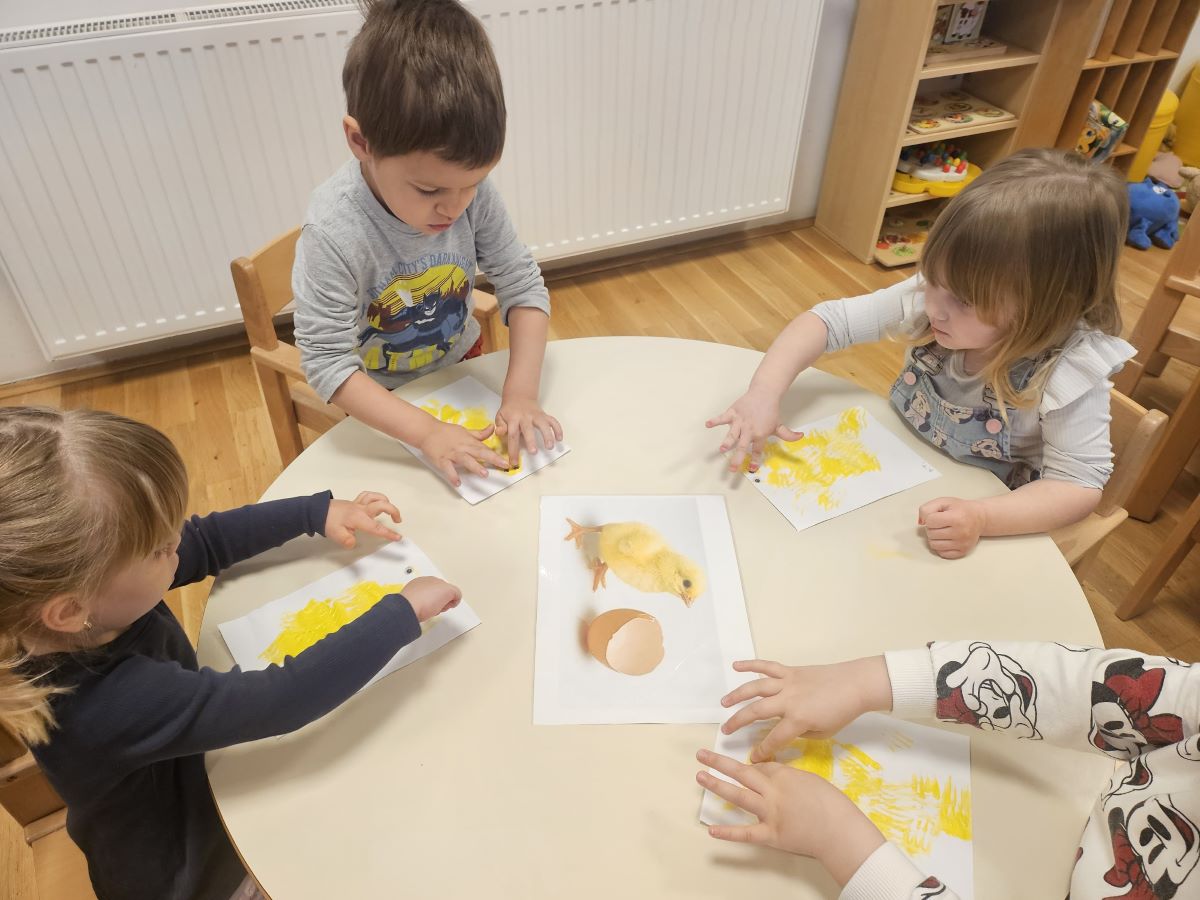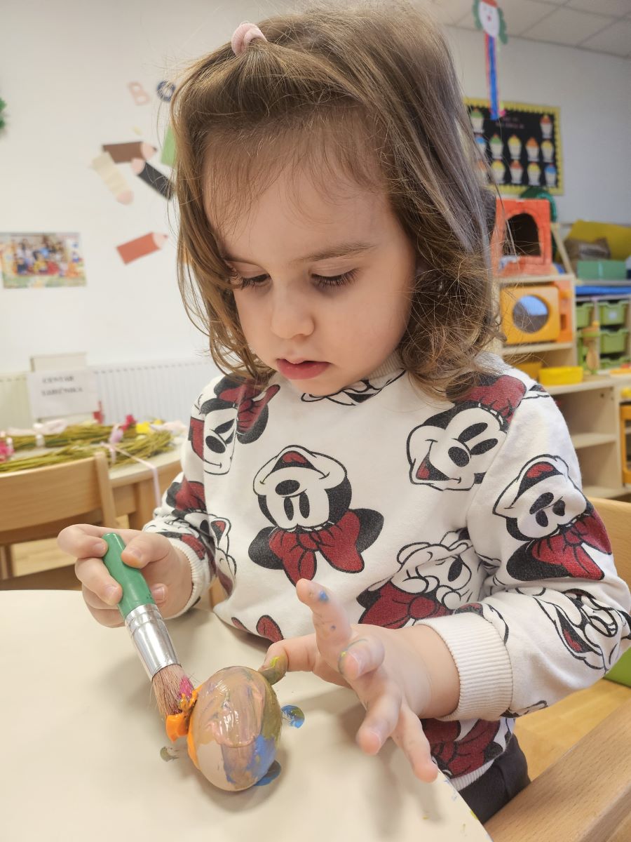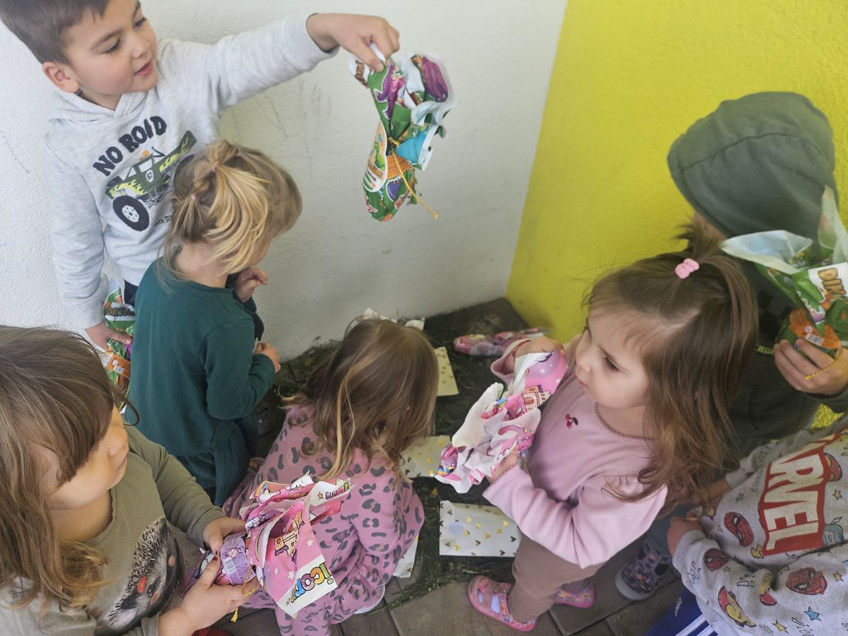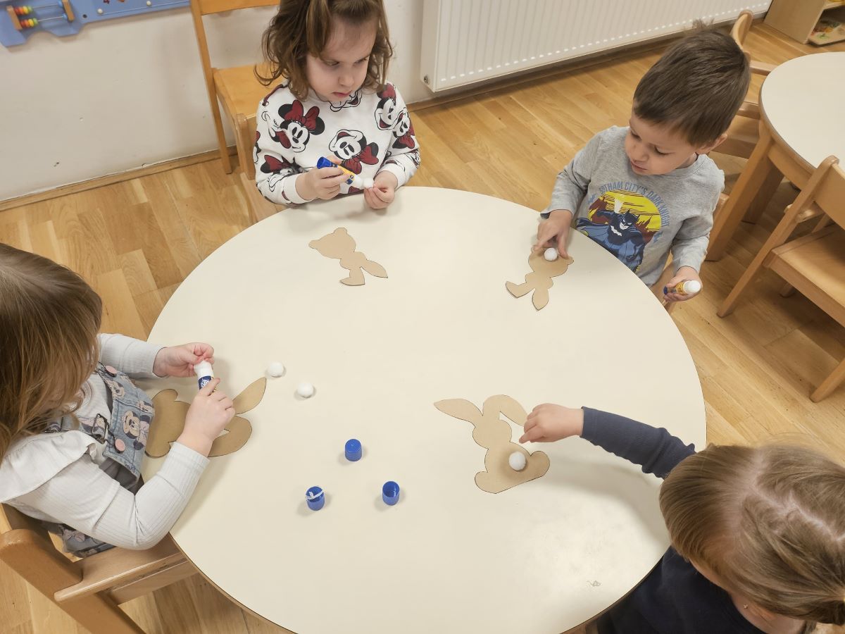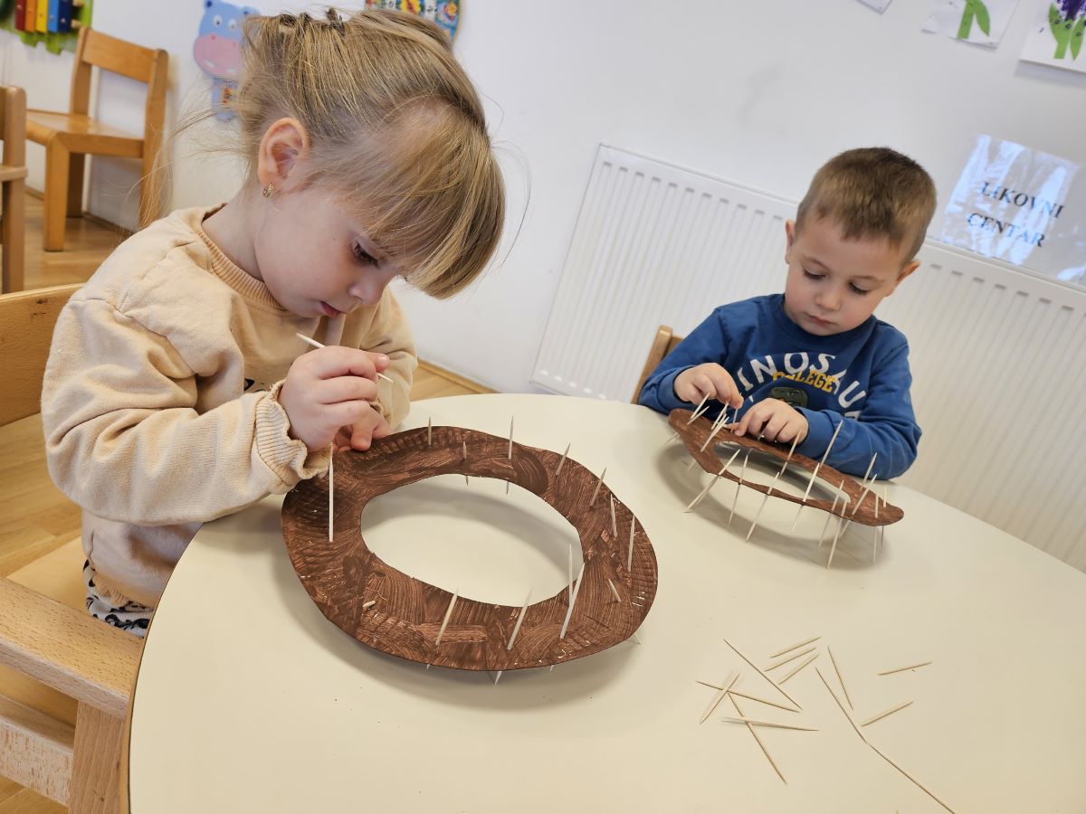 U našoj jasličkoj skupini „Zečići“ protekli su dani bili u znaku priprema za Uskrs. Kroz igru, razgovor i razne aktivnosti djeca su upoznavala uskrsne običaje i tradiciju. Vrijedne male ruke ukrašavale su i izrađivale uskrsna jaja različitim tehnikama, a s velikim su veseljem izrađivala i uskrsne čestitke za svoje najmilije. U šetnji okolicom djeca su brala travu od koje smo zajedno napravili uskrsno gnijezdo. Kroz razgovor smo djeci na njima primjeren način približili priču o Isusovoj muci i uskrsnuću, a tom prilikom izrađivali smo i krunu od trnja. Naše aktivnosti upotpunila je i izrada pilića i zečića, koji su dodatno uljepšali prostor naše skupine i donijeli pravi uskrsni ugođaj. Uz sve pripreme za Uskrs, u našoj smo skupini proslavili i rođendan, pa je tjedan bio ispunjen veseljem, pjesmom i smijehom. Kroz sve aktivnosti djeca su razvijala kreativnost, zajedništvo i radost stvaranja, a naš vrtić bio je ispunjen toplinom i uskrsnim veseljem.