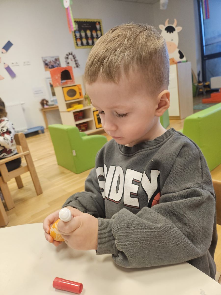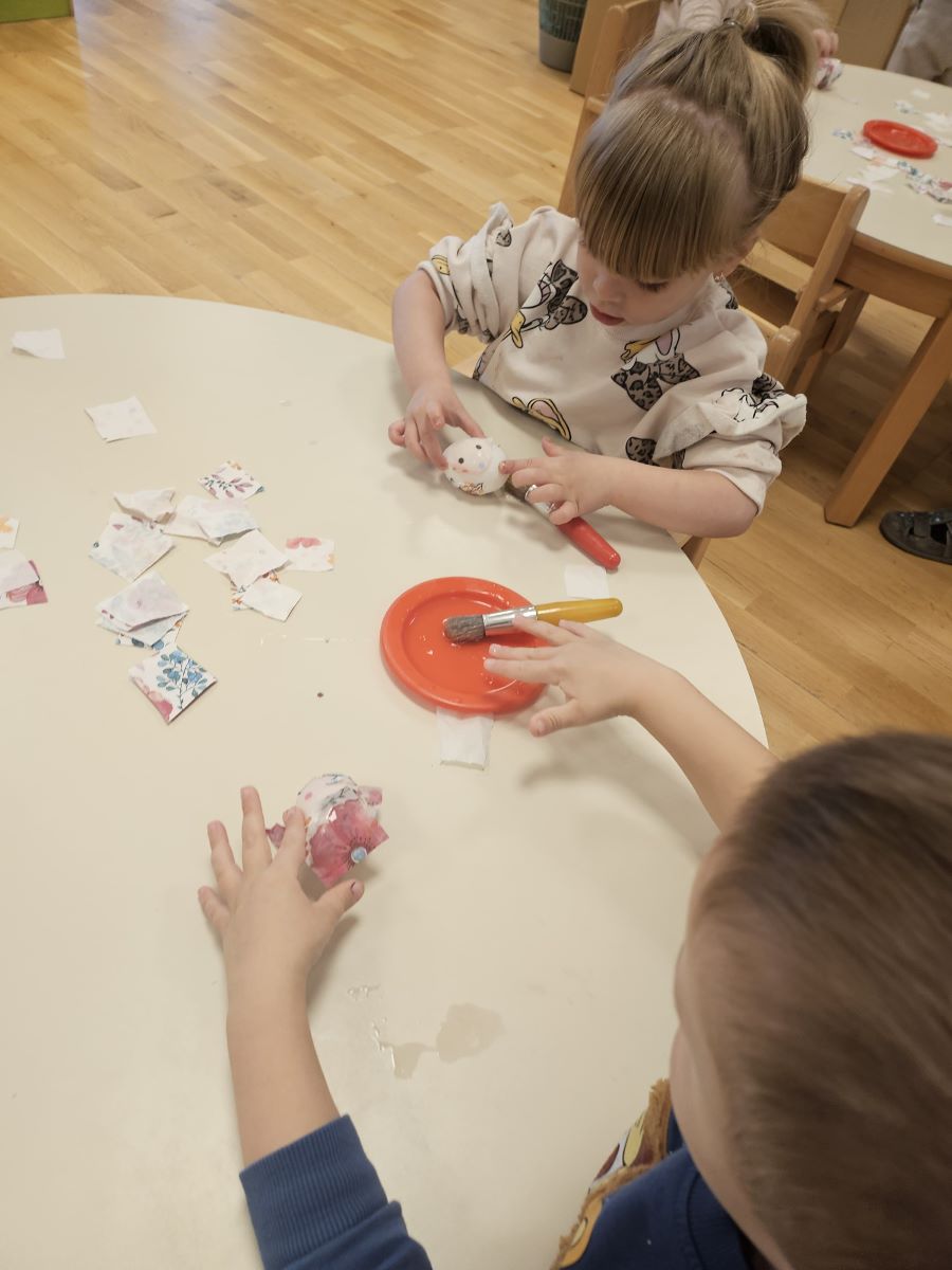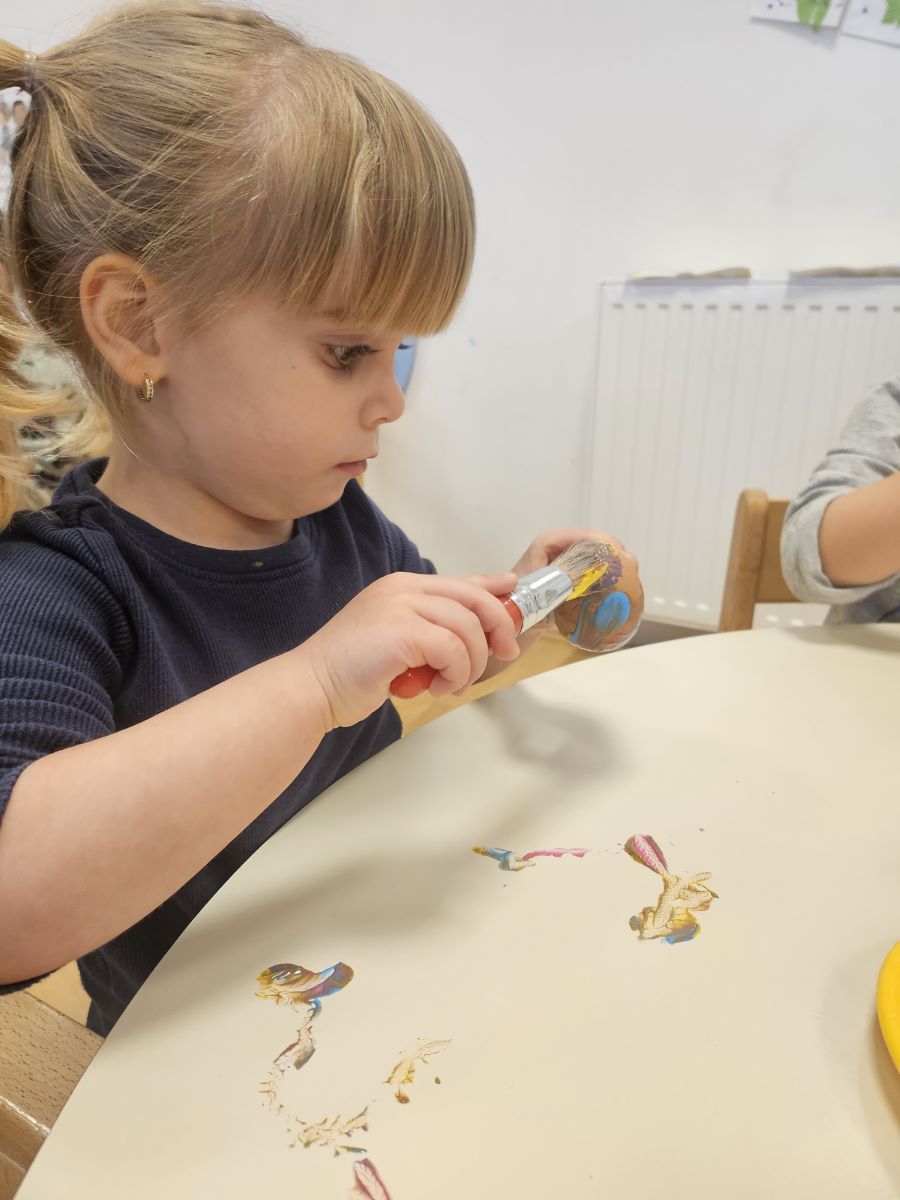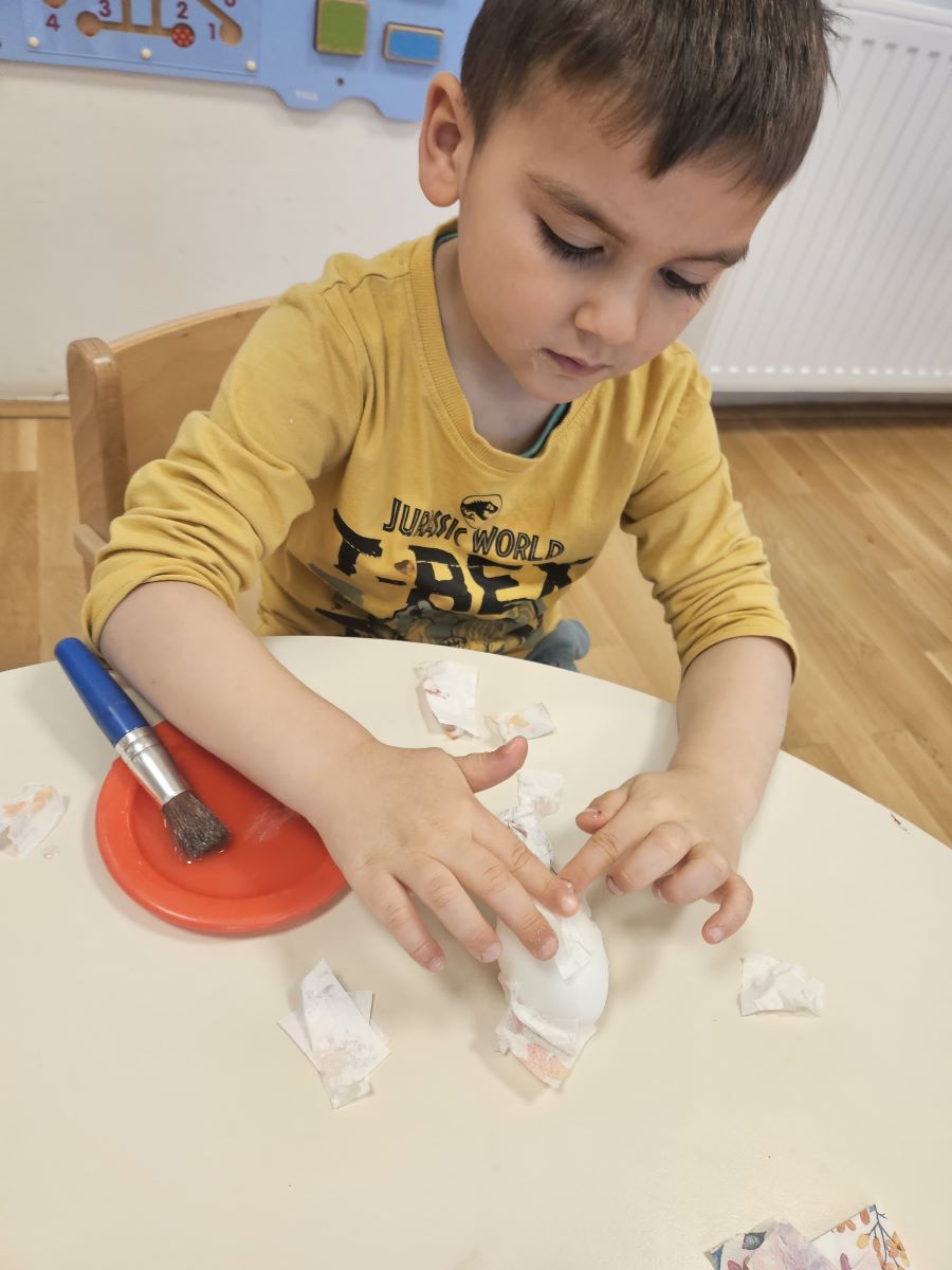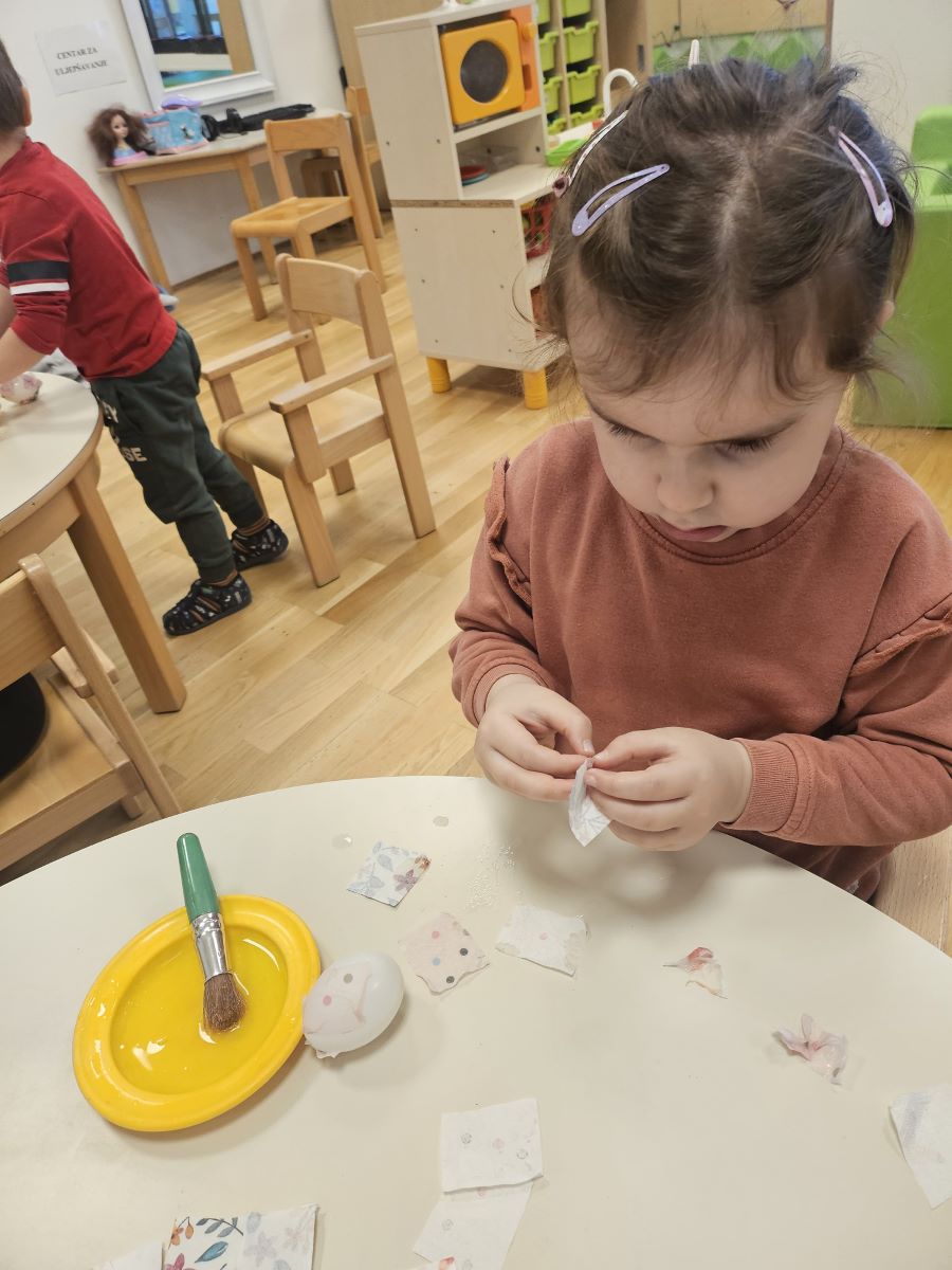 U našoj jasličkoj skupini „Zečići“ protekli su dani bili u znaku priprema za Uskrs. Kroz igru, razgovor i razne aktivnosti djeca su upoznavala uskrsne običaje i tradiciju. Vrijedne male ruke ukrašavale su i izrađivale uskrsna jaja različitim tehnikama, a s velikim su veseljem izrađivala i uskrsne čestitke za svoje najmilije. U šetnji okolicom djeca su brala travu od koje smo zajedno napravili uskrsno gnijezdo. Kroz razgovor smo djeci na njima primjeren način približili priču o Isusovoj muci i uskrsnuću, a tom prilikom izrađivali smo i krunu od trnja. Naše aktivnosti upotpunila je i izrada pilića i zečića, koji su dodatno uljepšali prostor naše skupine i donijeli pravi uskrsni ugođaj. Uz sve pripreme za Uskrs, u našoj smo skupini proslavili i rođendan, pa je tjedan bio ispunjen veseljem, pjesmom i smijehom. Kroz sve aktivnosti djeca su razvijala kreativnost, zajedništvo i radost stvaranja, a naš vrtić bio je ispunjen toplinom i uskrsnim veseljem.