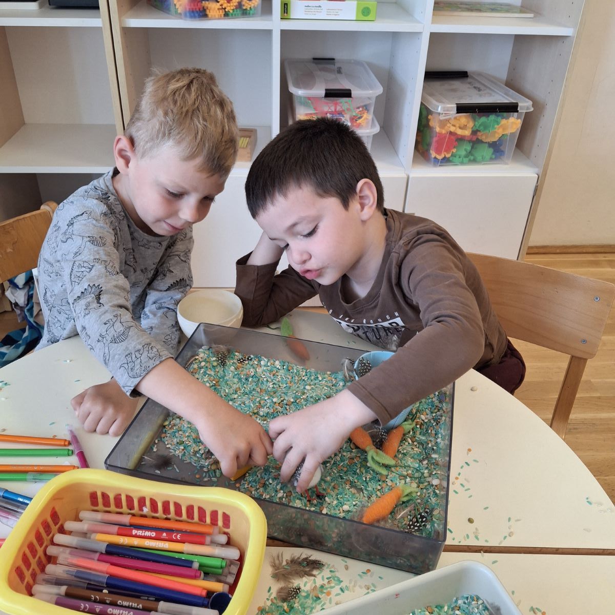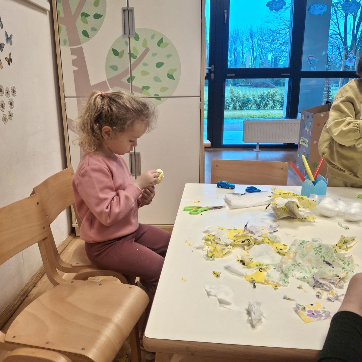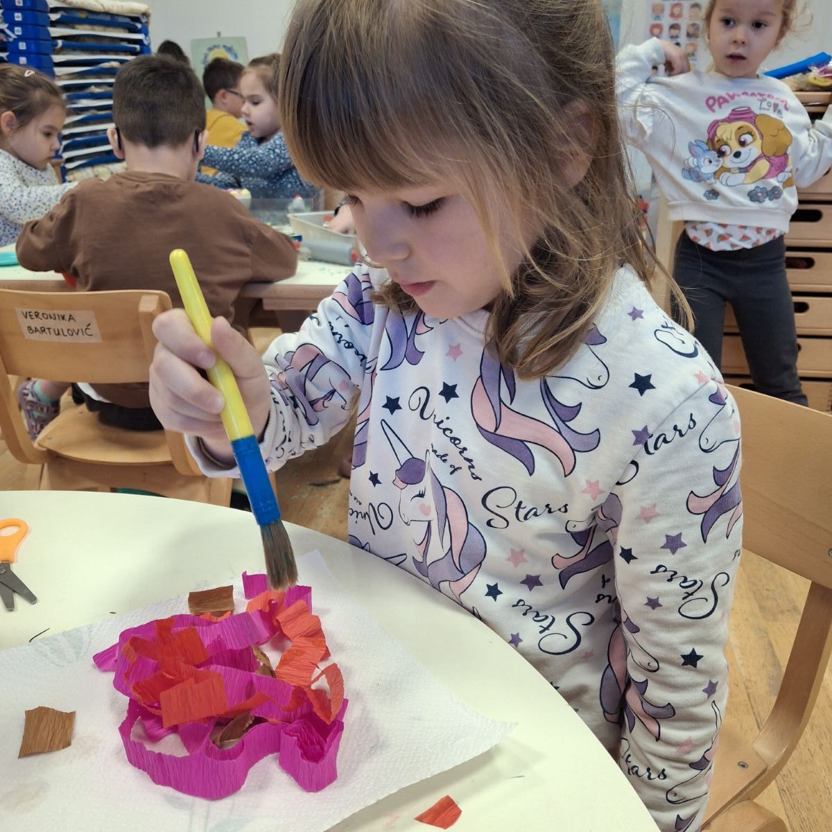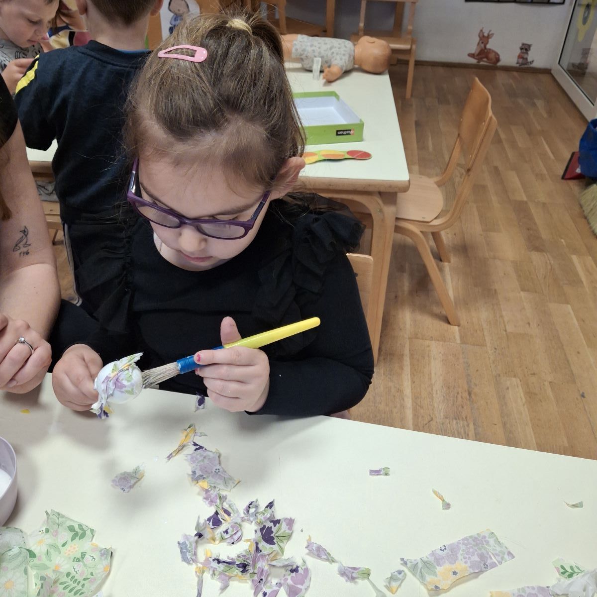 U našoj skupini “Iskrice” proteklo razdoblje bilo je ispunjeno radošću, kreativnošću i veseljem uoči nadolazećeg Uskrsa. Djeca su s velikim zanimanjem sudjelovala u raznim Uskrsnim aktivnostima. Posebno ih je razveselilo bojanje jaja, koja su sami donesli. Ove godine smo se odlučili za bojanje raznobojnim krep papirom koji smo močili u vodu s octom. U likovnom centru okušali smo se i u dekupaž tehnici, razvijajući finu motoriku i osjećaj za estetiku. Kroz radne listove, Iskrice su učvršćivale svoje spoznaje, vježbale pažnju i logičko razmišljanje, dok su kroz razgovor i slikovnice upoznavali običaje vezane za Uskrs.